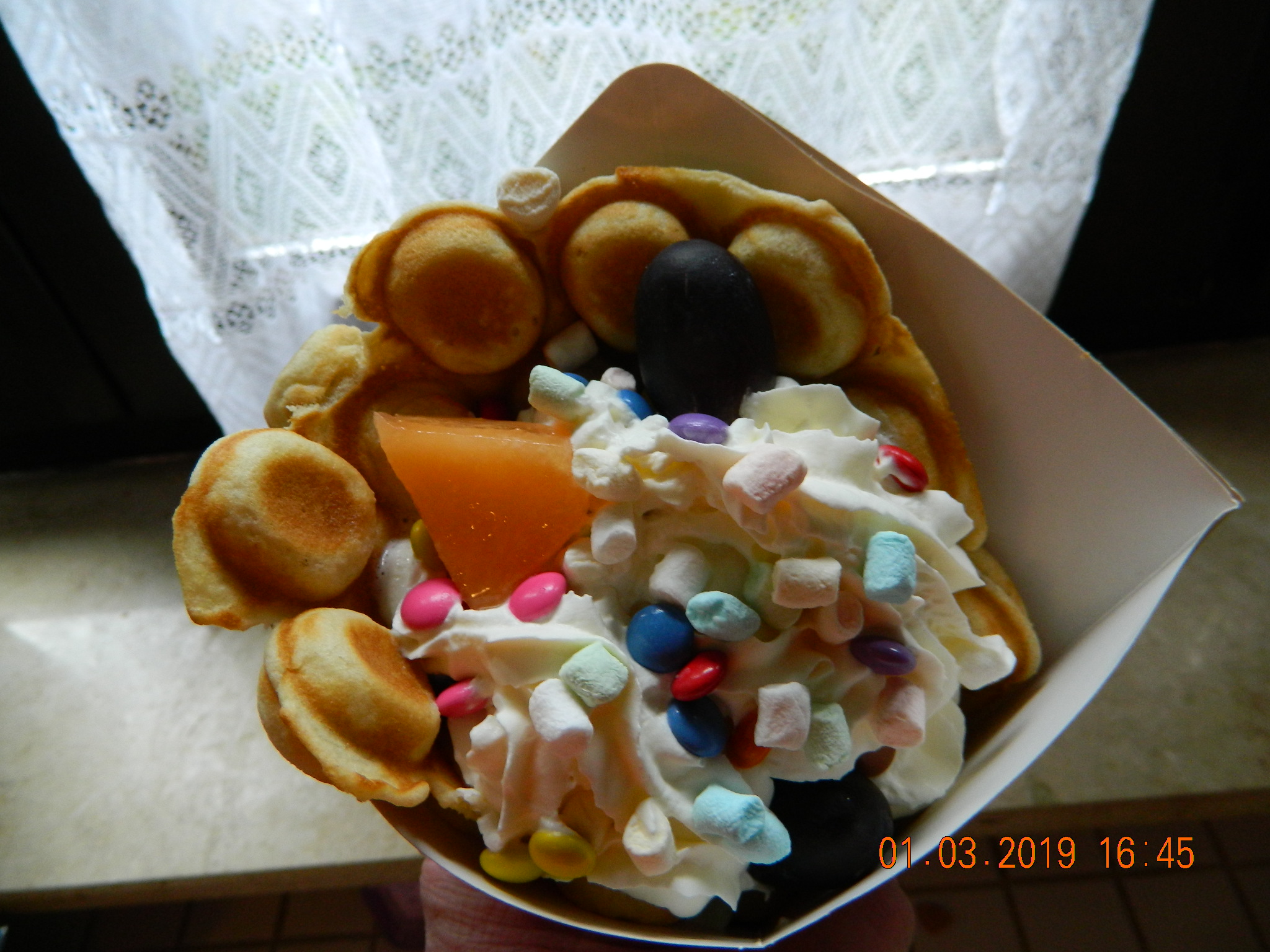 Die Waffel - Schaschlik werden immer frisch gemacht, da das Obst schon nach einer Stunde in der Auslage beleidigt ist ;-). Also bitte 5 min Zeit mitbringen.